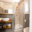 Il grazioso bagno, con finestra, è dotato di una doccia moderna e bidet, garantendo un ambiente pulito e raffinato. La posizione al piano terra facilita l'accesso all'appartamento, rendendolo comodo e accessibile.