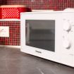 Il piano cucina è ampio e completamente attrezzato, fornito di forno a microonde, bollitore e un pratico doppio lavabo, offrendo un ambiente ideale per preparare pasti deliziosi. La zona living è arredata con un tavolo da pranzo e un comodo divano.