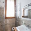 Si compone di un’ampia zona living con cucina contraddistinta da un vecchio camino non utilizzabile, due camere da letto matrimoniali, di cui una con bagno completo di doccia privato, una stanza singola (con un secondo letto estraibile) ed un secondo bagno anche questo completo di doccia. Completano la piacevolezza dell’appartamento gli affacci: un campiello con tipicamente veneziano ed un verde giardino condominiale.