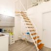 La zona notte, raccolta e riservata, si sviluppa su un soppalco raggiungibile tramite una scala dall'ingresso: un angolo intimo pensato per garantire massimo relax. Il bagno, moderno e ben rifinito, è dotato di tutti i comfort essenziali. La connessione Wi-Fi veloce, l’aria condizionata e la TV a schermo piatto assicurano ogni comodità sia per il tempo libero che per eventuali esigenze di lavoro.