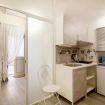 Un ambiente curato e luminoso. L’ingresso si apre su un pratico angolo cottura attrezzato, perfetto per chi ama preparare i propri pasti anche in vacanza. Il soggiorno, ampio e arredato con stile, ospita un comodo divano letto matrimoniale ed è impreziosito da una splendida volta a botte, dettaglio architettonico che dona un’atmosfera calda e autentica all’intero spazio.